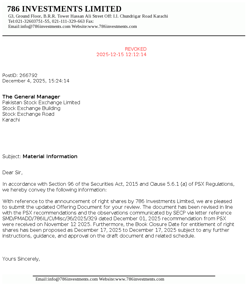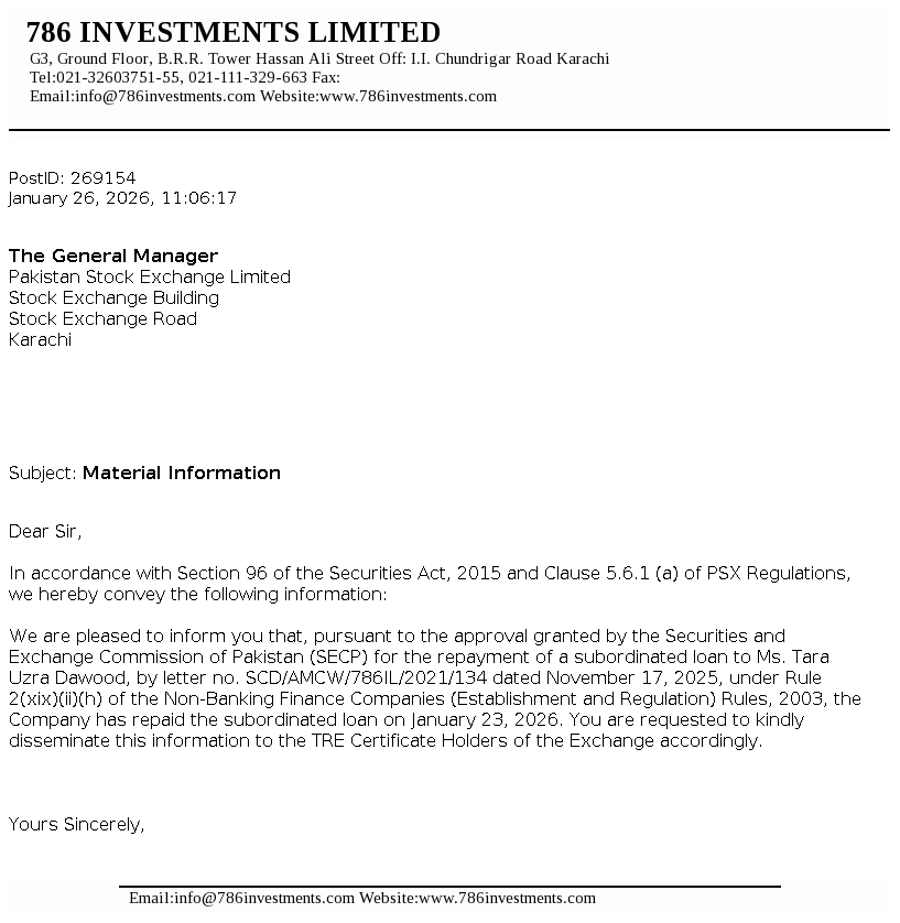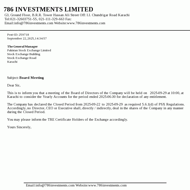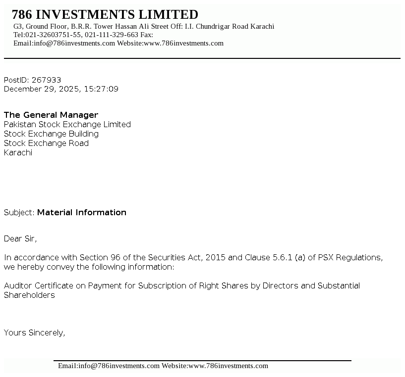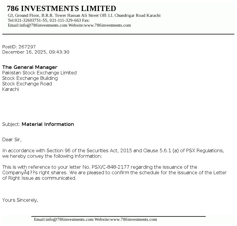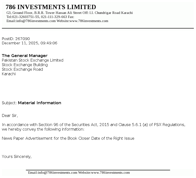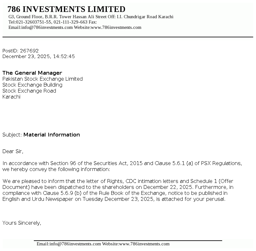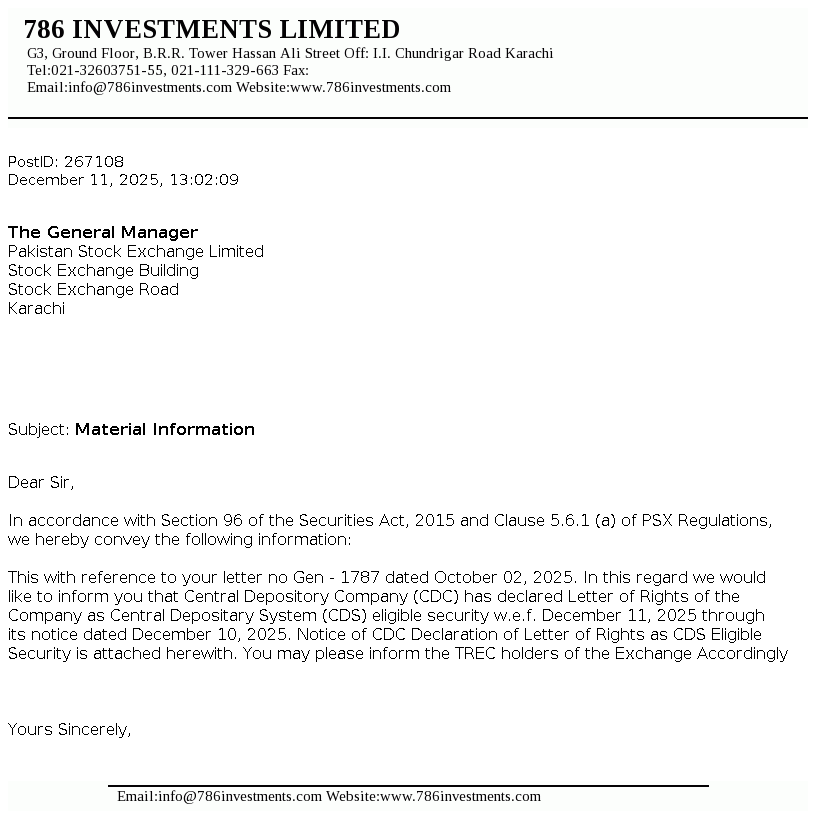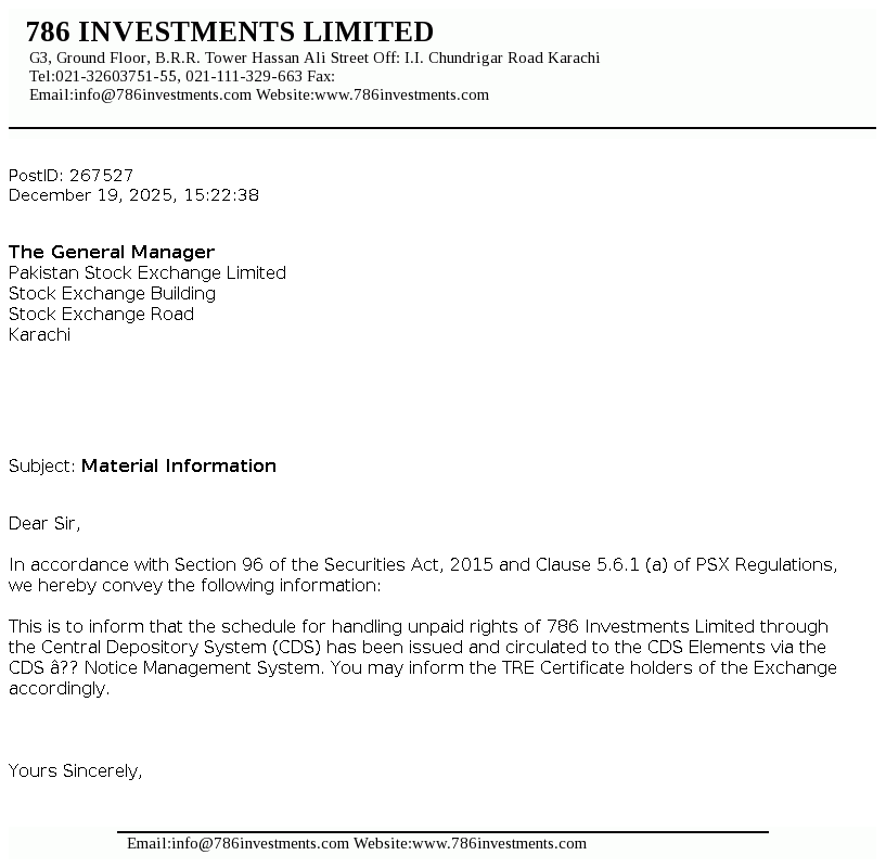 | 2025-12-18 | 786 | 786 Investments Limited -NCCPL Notice | |