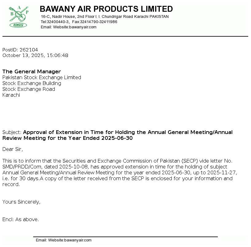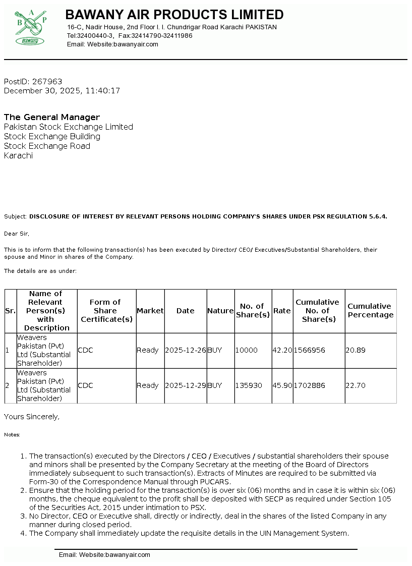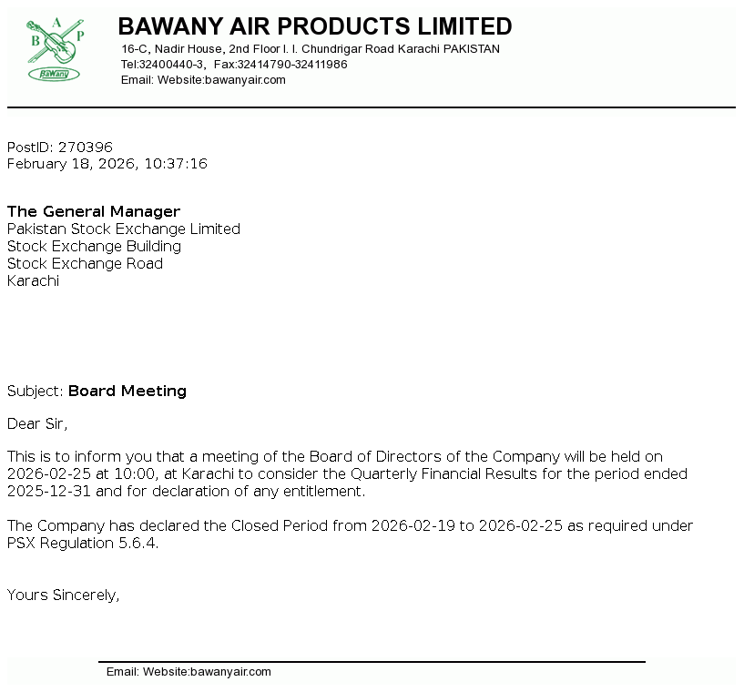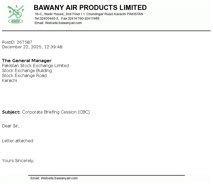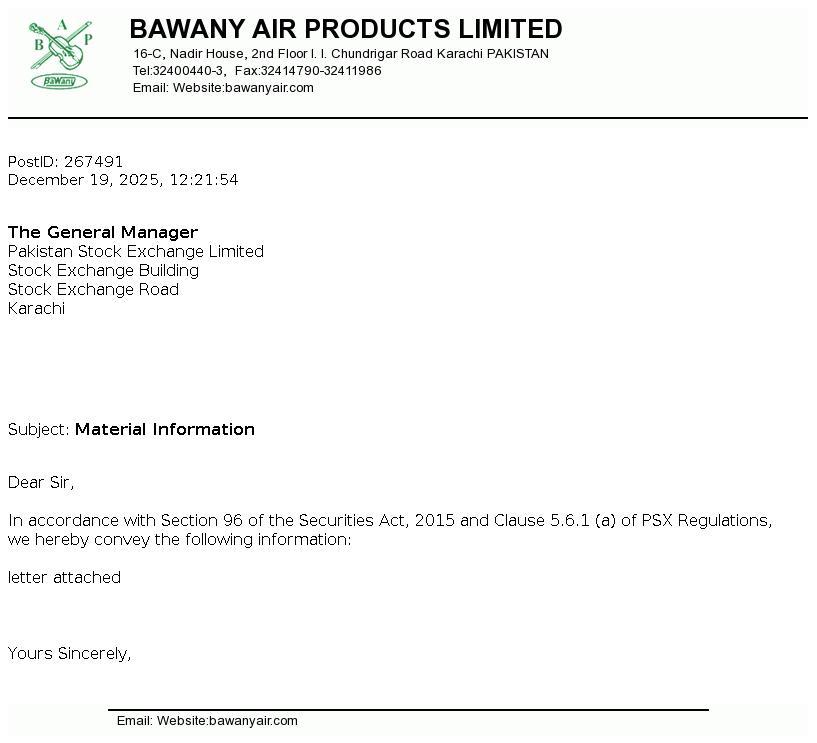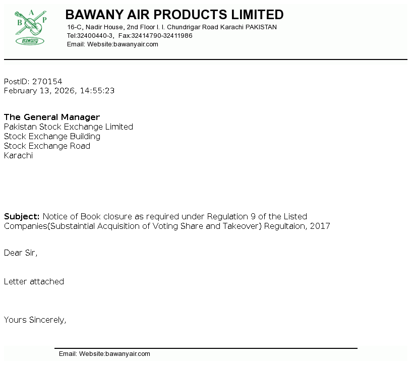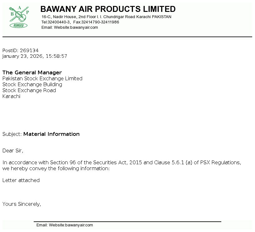 | 2026-01-13 | Revision of Book Closure date in the Public Offer Document to acquire voting shares of Bawany Air Products Limited | Image PDF |