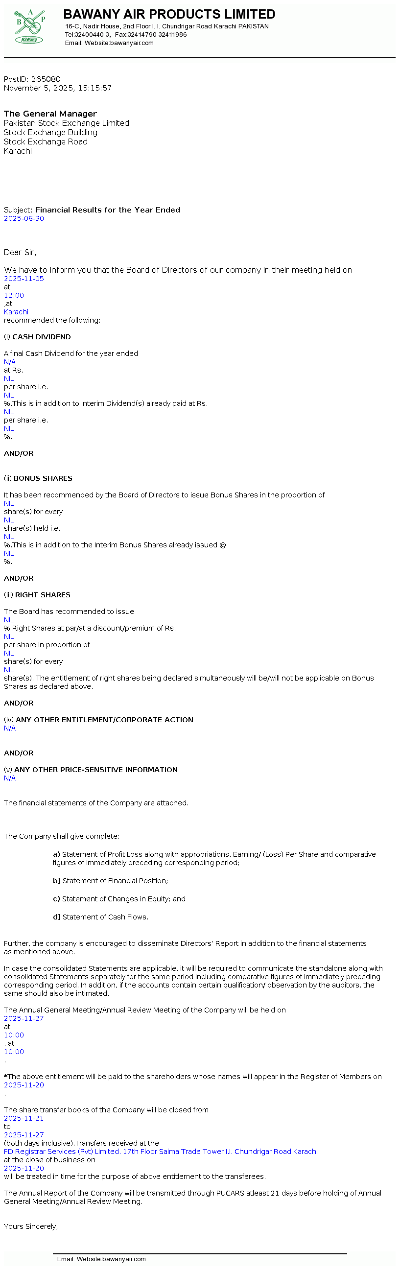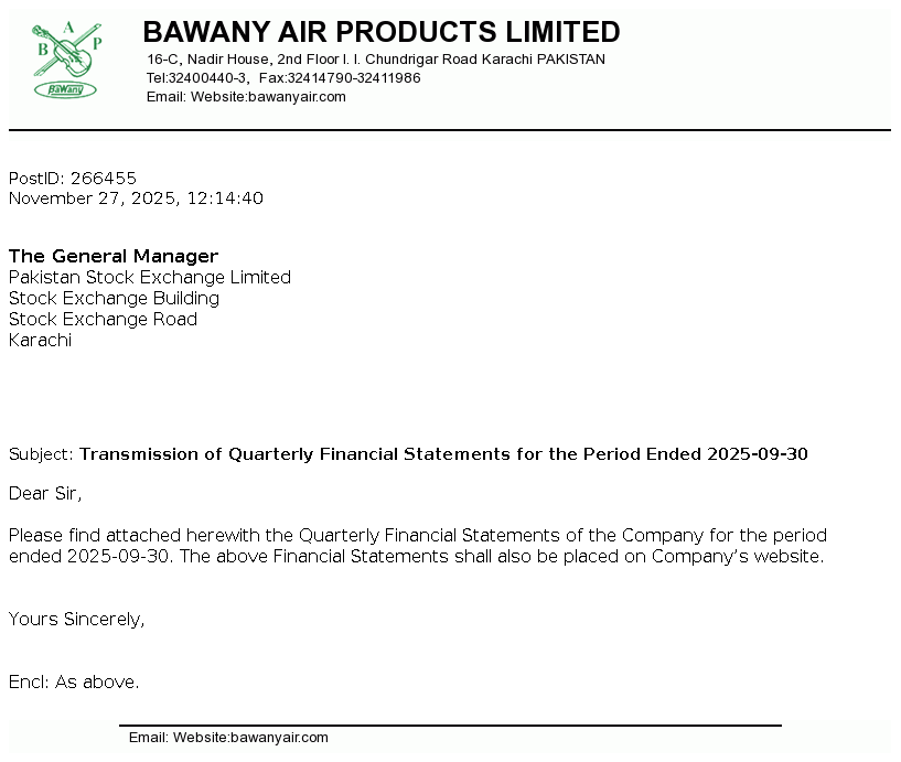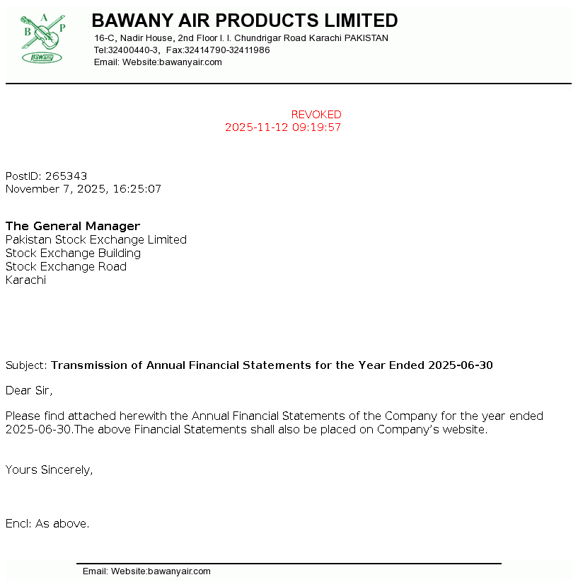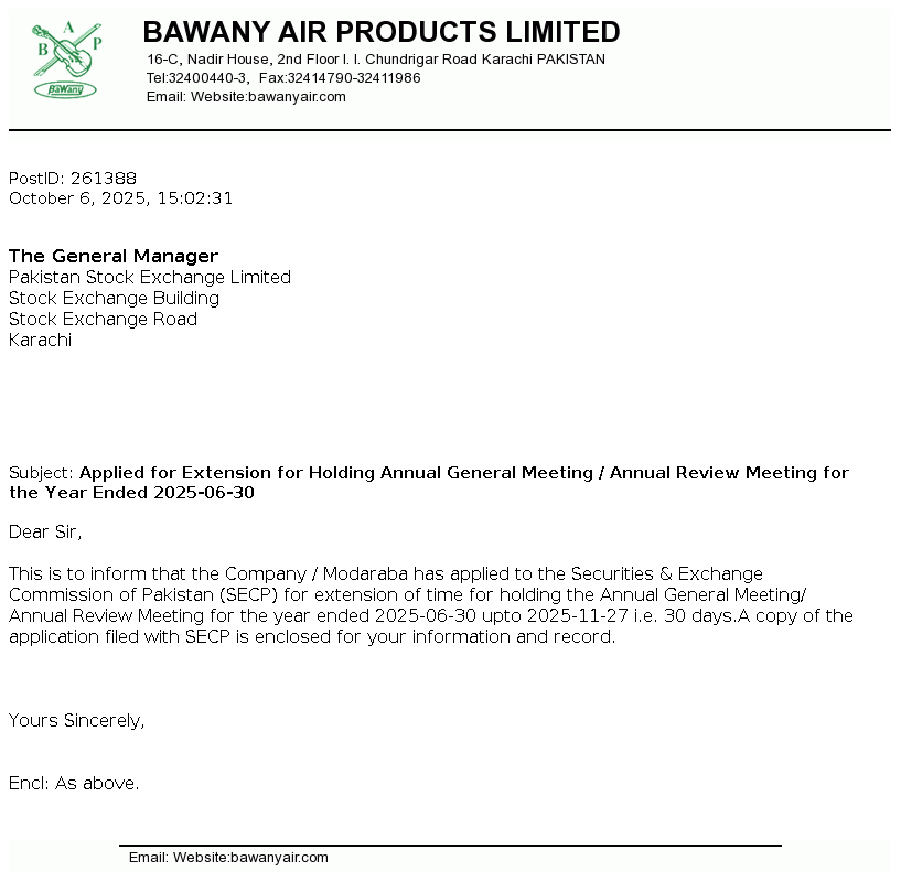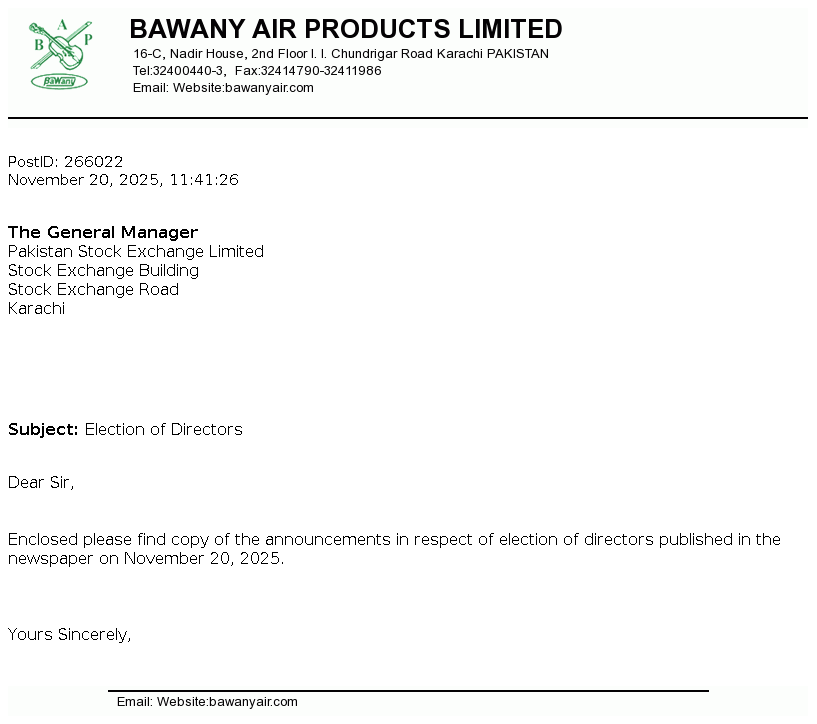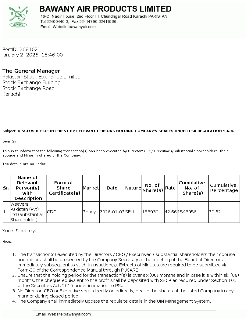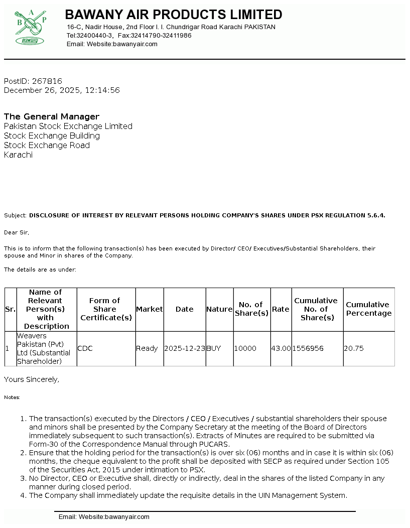 | 2026-01-13 | Revision of Book Closure date in the Public Offer Document to acquire voting shares of Bawany Air Products Limited | Image PDF |