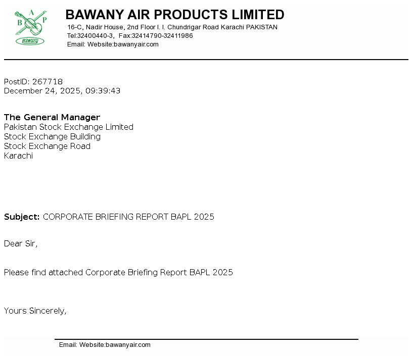 | 2025-12-24 | CORPORATE BRIEFING REPORT BAPL 2025 | Image PDF |