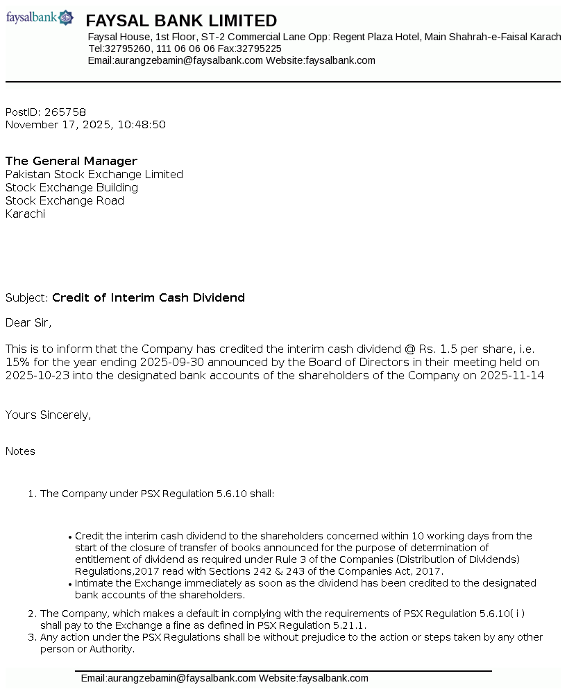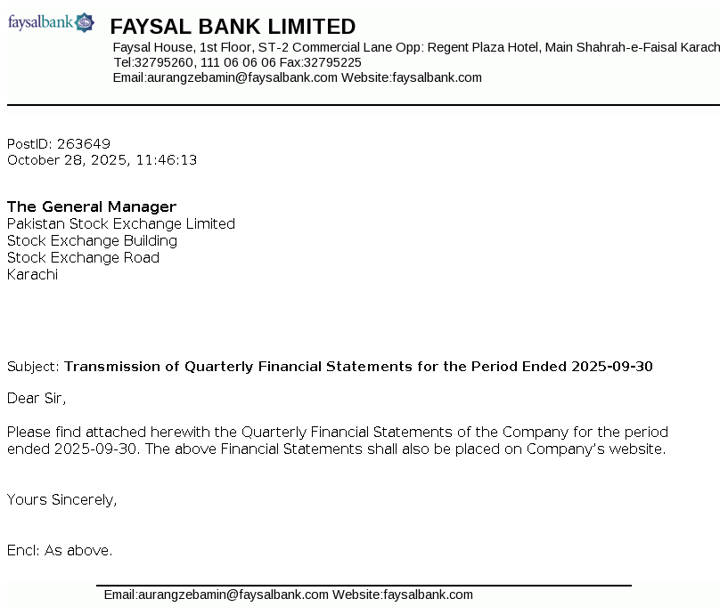 | 2025-10-13 | Board of Directors Meeting of Faysal Bank Limited | Image PDF |
