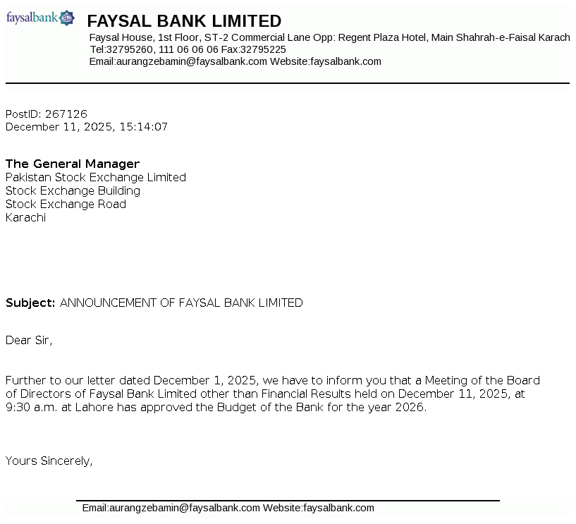 | 2025-12-11 | ANNOUNCEMENT OF FAYSAL BANK LIMITED | Image PDF |