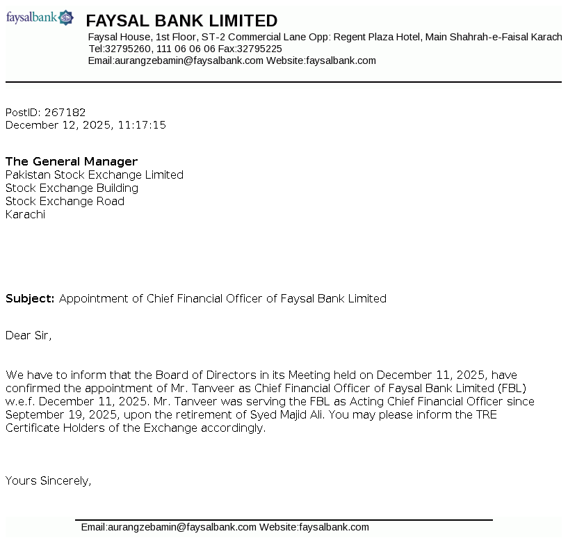 | 2025-12-12 | Appointment of Chief Financial Officer of Faysal Bank Limited | Image PDF |