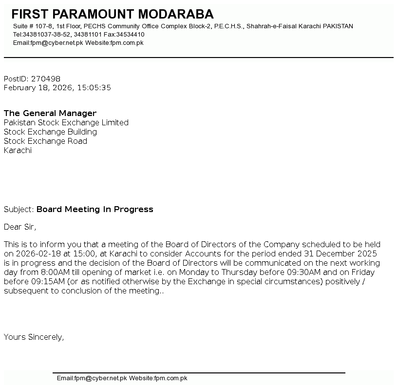 | 2025-09-24 | FPRM | First Paramount Modaraba Board Meeting | |
