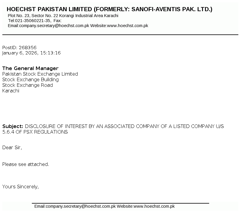 | 2026-01-06 | DISCLOSURE OF INTEREST BY AN ASSOCIATED COMPANY OF A LISTED COMPANY U/S 5.6.4 OF PSX REGULATIONS | Image PDF |