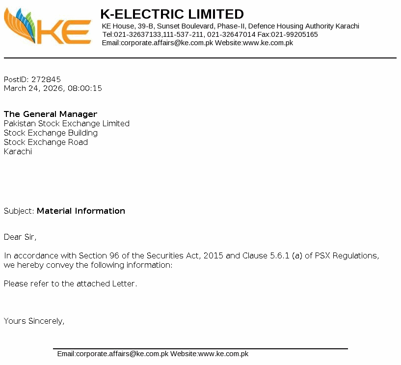 | 2026-02-13 | KEL | K-Electric Limited Material Information | |