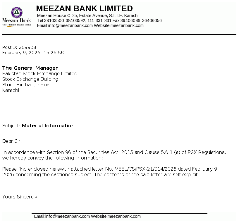 | 2026-02-09 | Disclosure of Material Information of Meezan Bank | Image PDF |