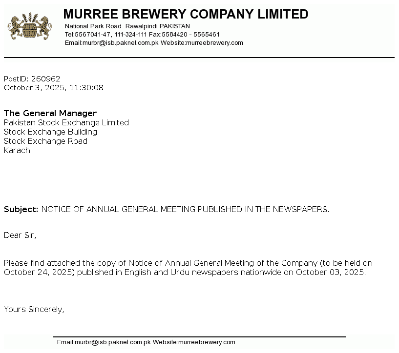 | 2025-10-03 | NOTICE OF ANNUAL GENERAL MEETING PUBLISHED IN THE NEWSPAPERS. | Image PDF |