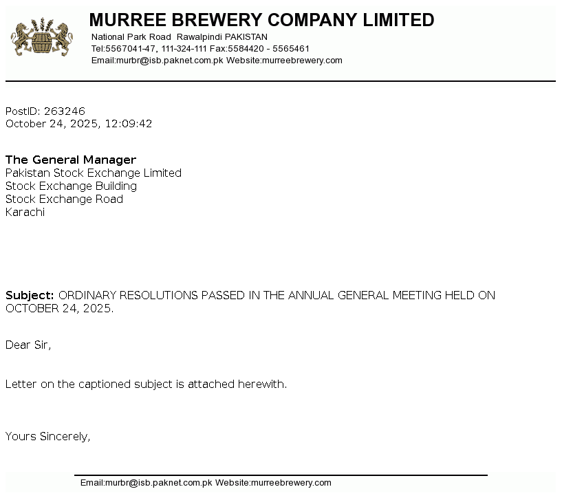 | 2025-10-24 | ORDINARY RESOLUTIONS PASSED IN THE ANNUAL GENERAL MEETING HELD ON OCTOBER 24, 2025. | Image PDF |