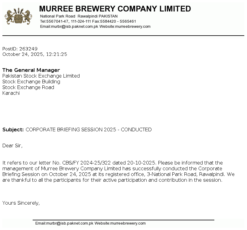 | 2025-10-24 | CORPORATE BRIEFING SESSION 2025 - CONDUCTED | Image PDF |