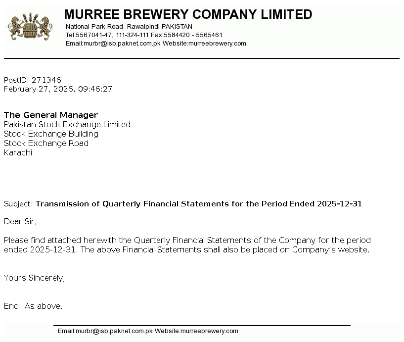 | 2026-02-27 | Transmission of Quarterly Report for the Period Ended December 31, 2025 | Image PDF |
