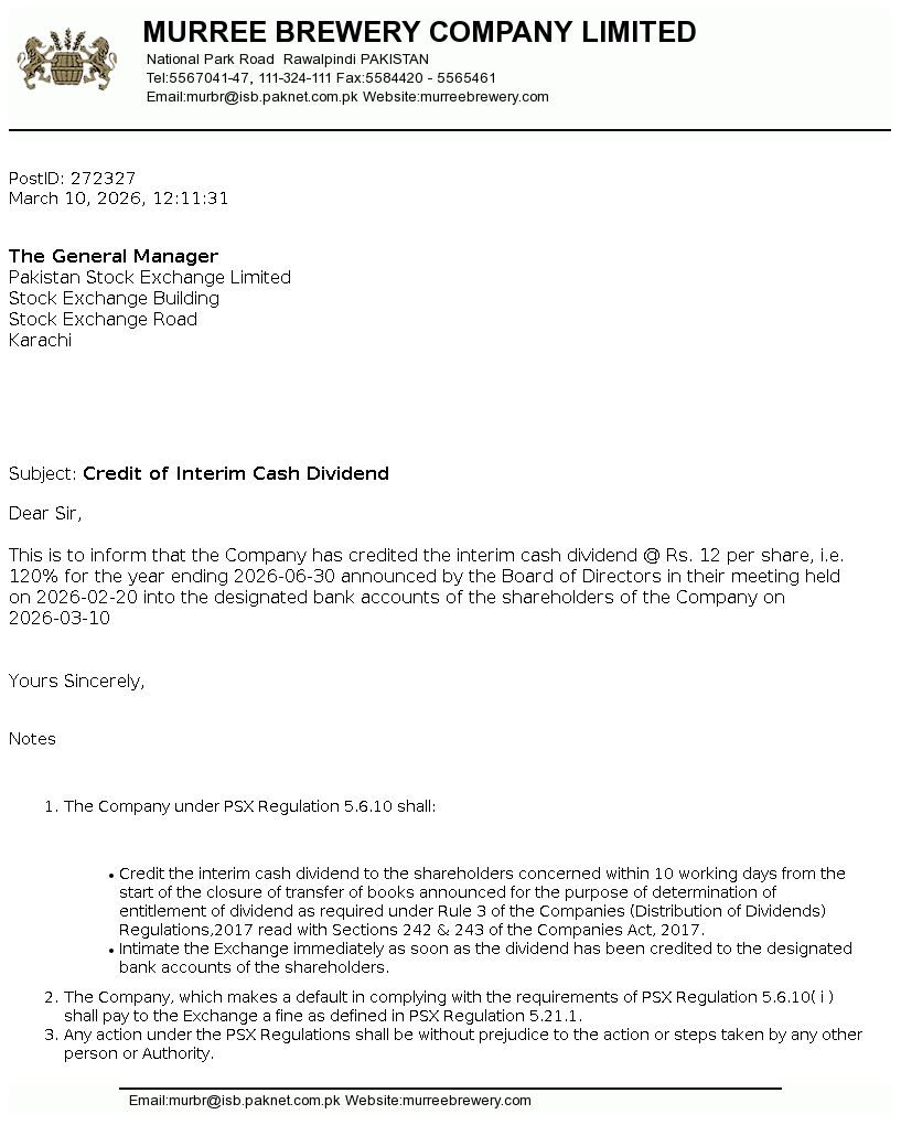 | 2026-03-10 | Credit of Second Interim Cash Dividend - FY 2025-26 | Image PDF |