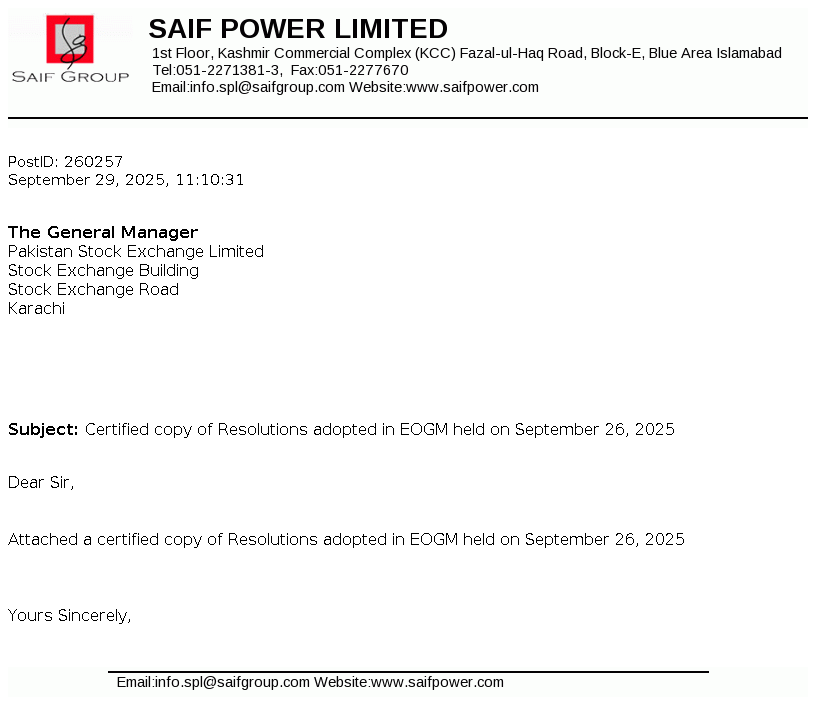 | 2025-09-29 | Certified copy of Resolutions adopted in EOGM held on September 26, 2025 | Image PDF |