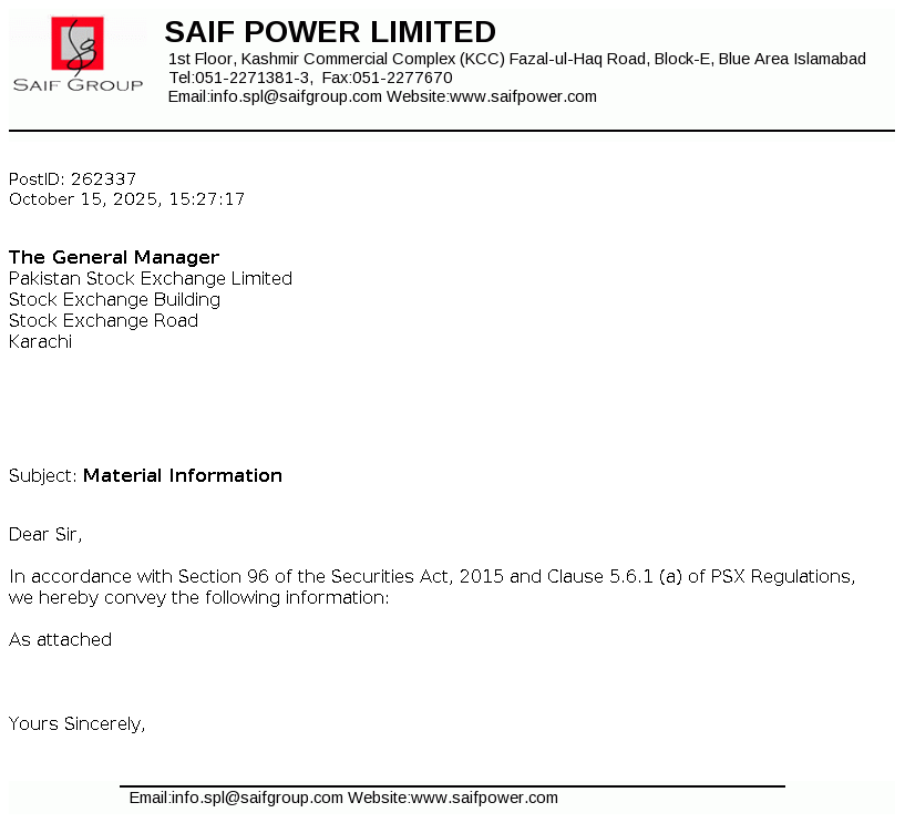 | 2025-10-15 | Disclosure of Interest by a Director CEO, or Executive of a listed company and their Spouses and the Substantial Shareholders u/c 5.6.1.(d) of PSX Regulations | Image |