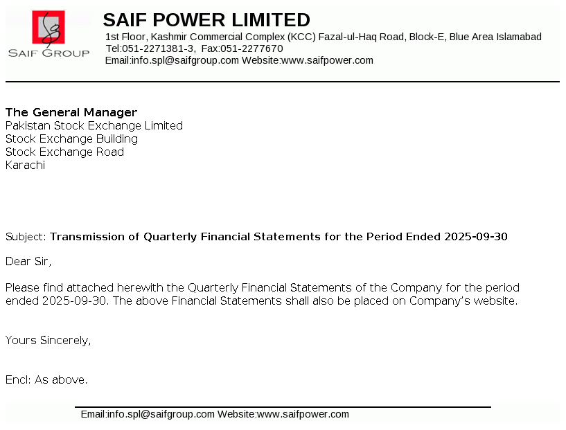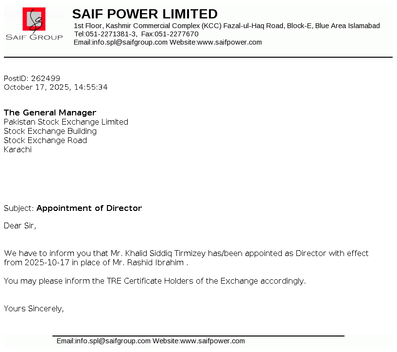 Saif Power Limited was incorporated in Pakistan on November 11, 2004 as a public limited company under the repealed Companies Ordinance, 1984 (which has now been replaced by