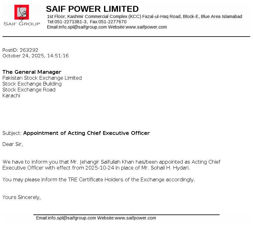 | 2025-10-24 | Appointment of Acting Chief Executive Officer | Image |