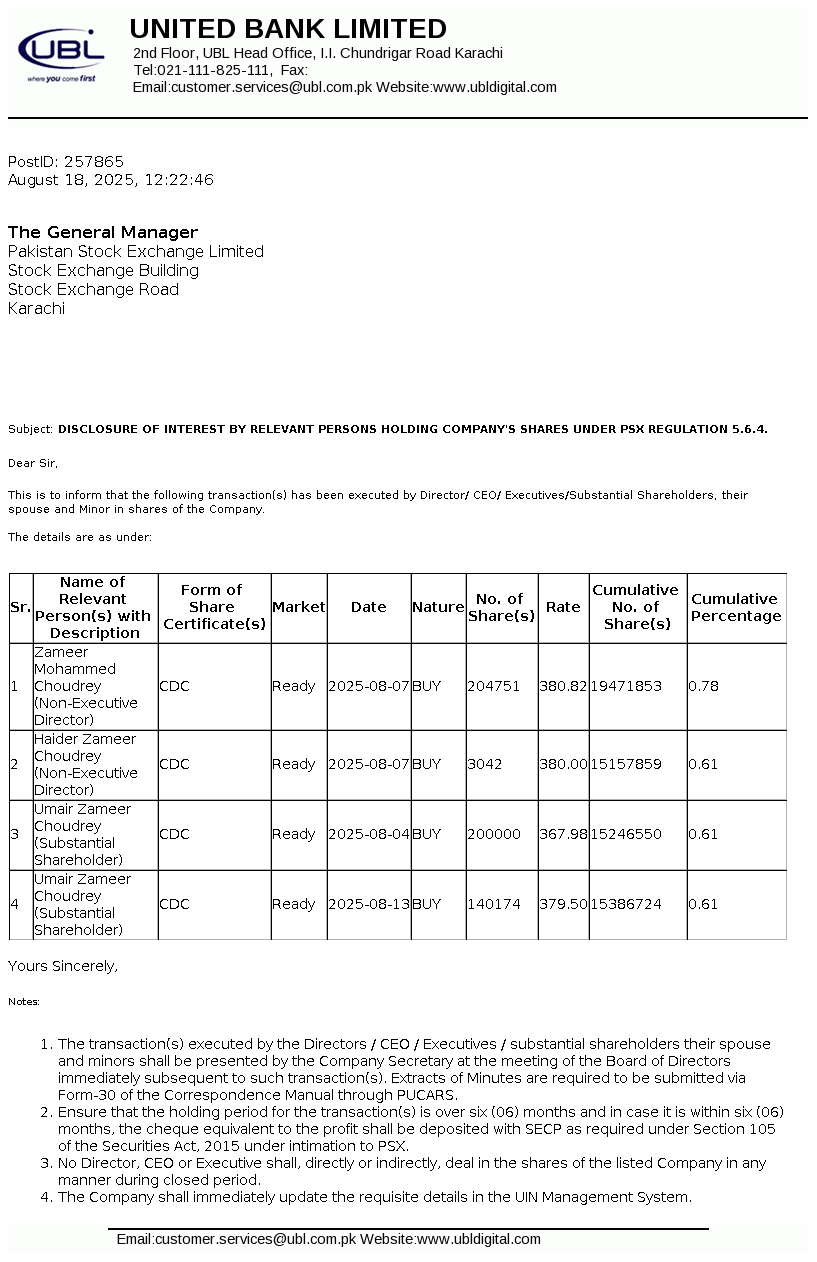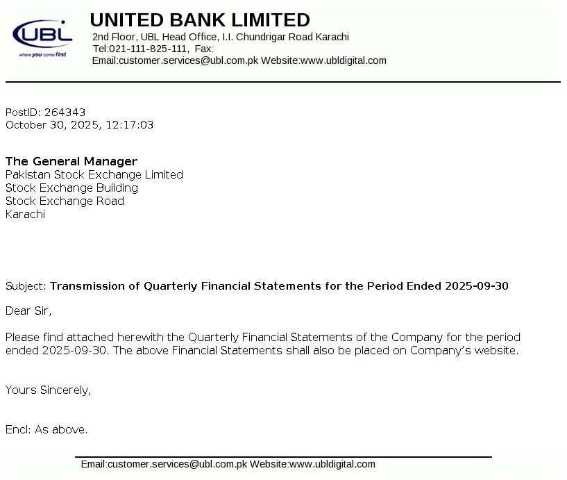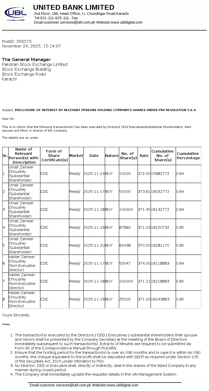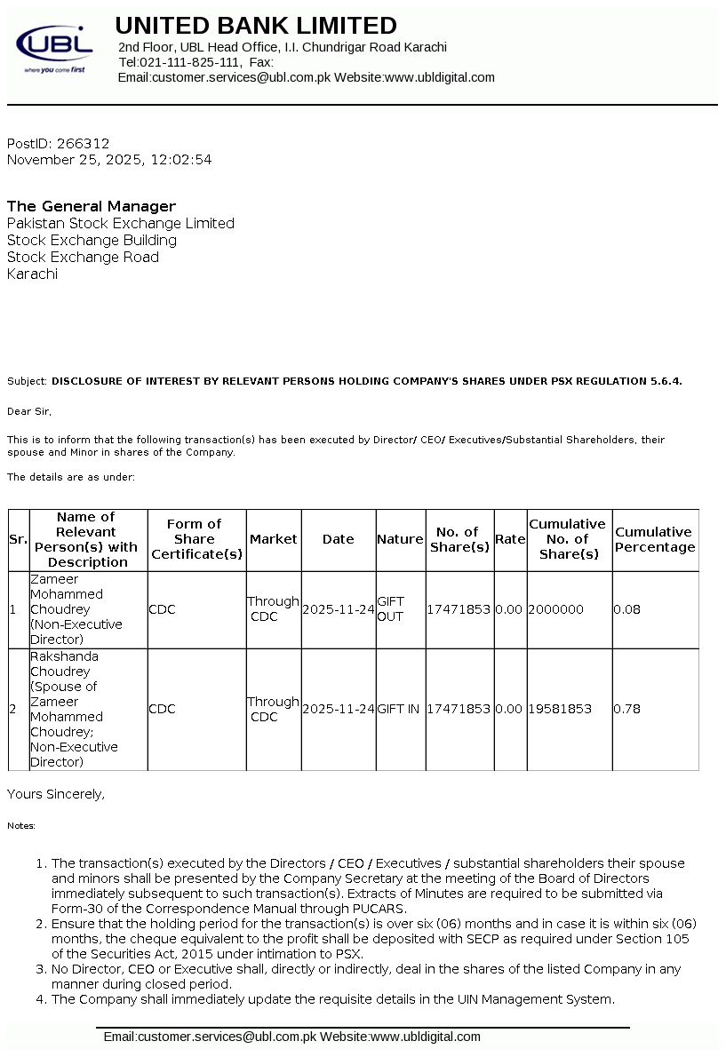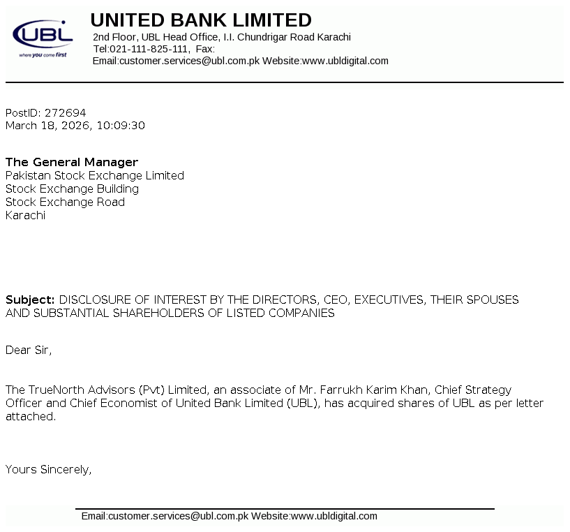 | 2025-12-18 | Approval of Annual Budget for the year 2026 of United Bank Limited | Image PDF |