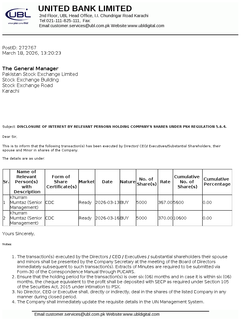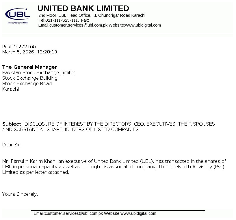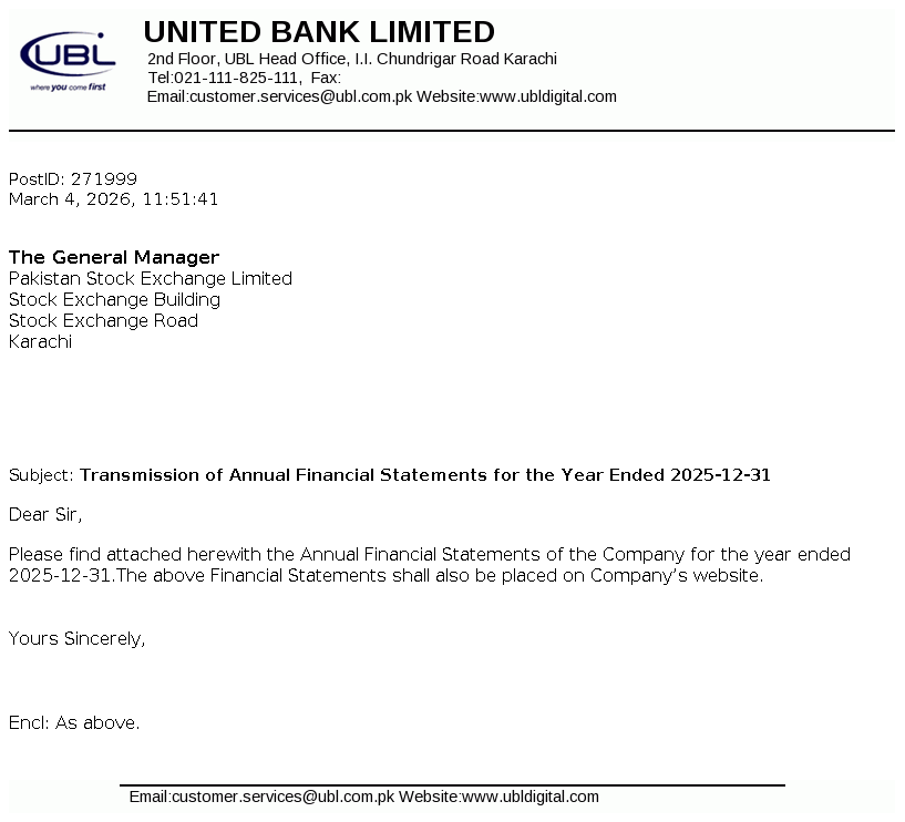 | 2026-03-04 | Notice of Annual General Meeting of United Bank Limited | Image PDF |